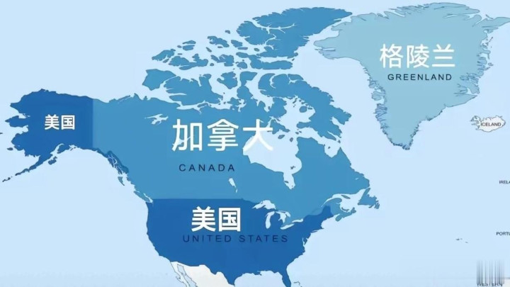 那么美国要通过什么战略实现呢?就是打造北美帝国计划,我前期多次讲过,在这个帝国版图中,美国将占领美洲、加拿大和格陵兰岛,所以现在他急切的要拿下格陵兰岛,最终是为了前后夹击拿下加拿大。大家翻开地图看一下,那就是一大片北美洲土地全部是美国的了。如果实现了,美国、加拿大和格陵兰岛加在一起,领土面积将成为世界之最,扩大到2151.61万平方公里;总人口将达到3.83亿人。