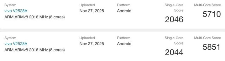 相关消息认为其应该是全新的 vivo S50 标准版,单核成绩在2044~2046左右,多核成绩5710~5851左右。