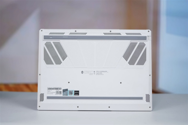 雷神猎刃S游戏本的的底部,上下两条同机身基本等宽的防滑条,还有大量的散热隔栅设计。