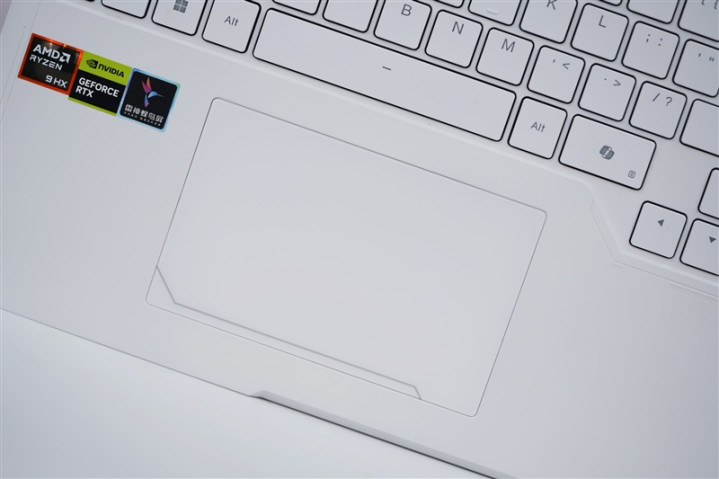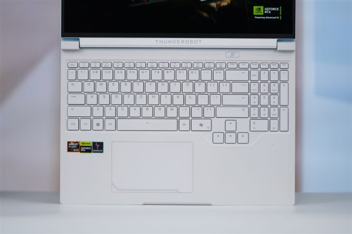 雷神猎刃S游戏本的触控板,左下方设计了一条装饰线,增加了一些机械感。