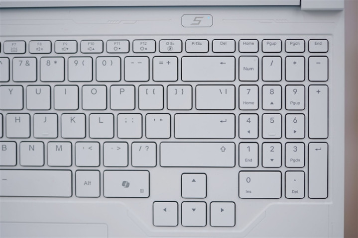 得益于16寸屏幕带来的机身尺寸,雷神猎刃S游戏本轻松布置下带数字区的键盘。