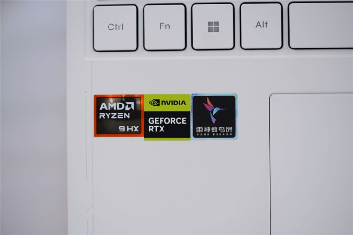 左侧腕托部分贴有处理器显卡以及屏幕的贴纸。