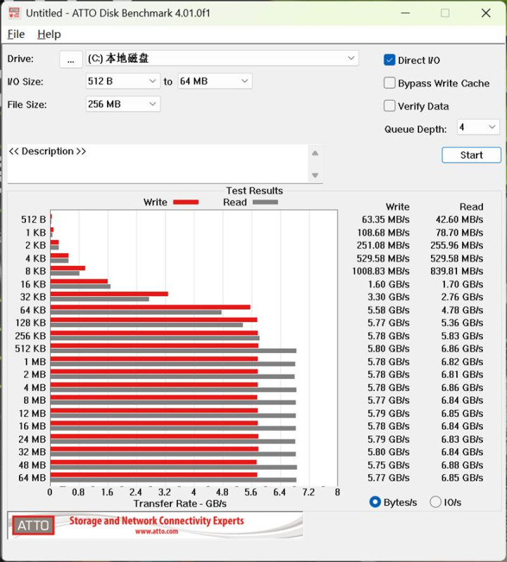 3、ATTO Disk Benchmark