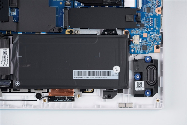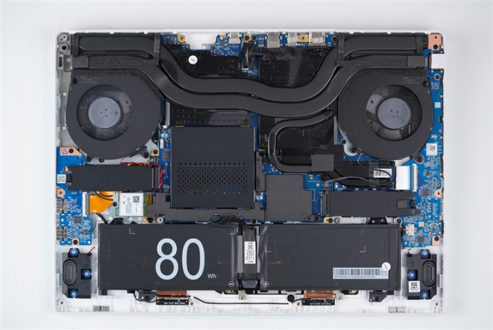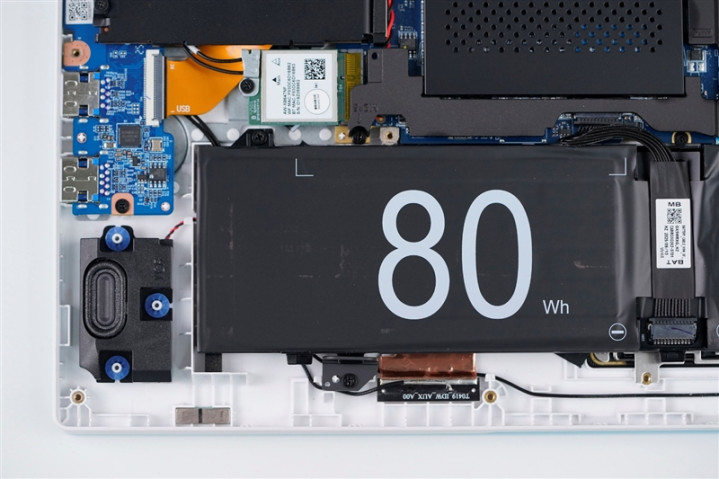 雷神猎刃S游戏本搭载的80Wh电池,和电池两侧的扬声器单元。
