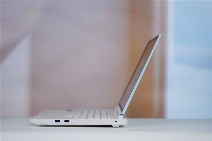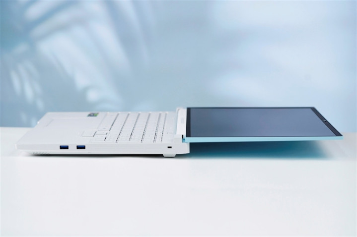 雷神猎刃S游戏本机身两侧分别提供了三个5Gbps的USB-A接口,一个支持100W PD的20Gbps USB3.2 Type-C接口,一个折叠的千兆网卡接口和一个3.5mm复合音频接口。