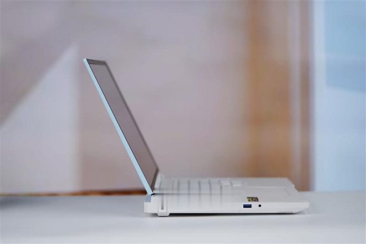 雷神猎刃S游戏本在背部提供了另一个支持100W PD的20Gbps USB3.2 Type-C接口,一个电源接口,一个Mini DP接口和一个HDMI 2.1接口。