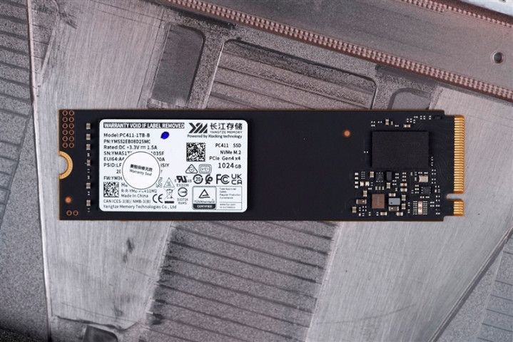 今天来到我们快科技评测室的雷神猎刃S游戏本,搭载的是来自长江存储的PC411 1TB SSD,虽然不是最新型号,但久经市场考验,TLC闪存搭配智能无缓设计,支持PCIe 4.0 x4接口,速度超过7GB/s,达到饱和带宽,凭借旗舰级的性能在当下仍然是非常可靠的选择。